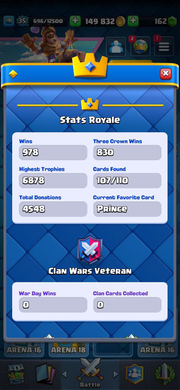 ROYALE LEVEL35 WITH 7MAXED CARD AND 149K GOLD