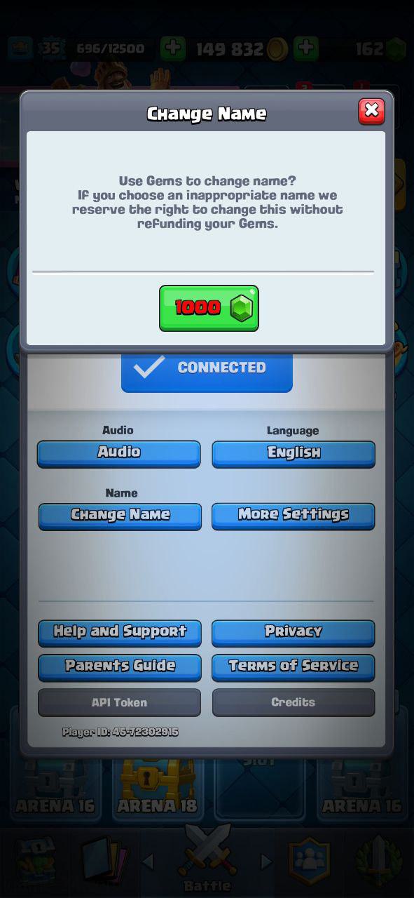 Change name:1000 gems require