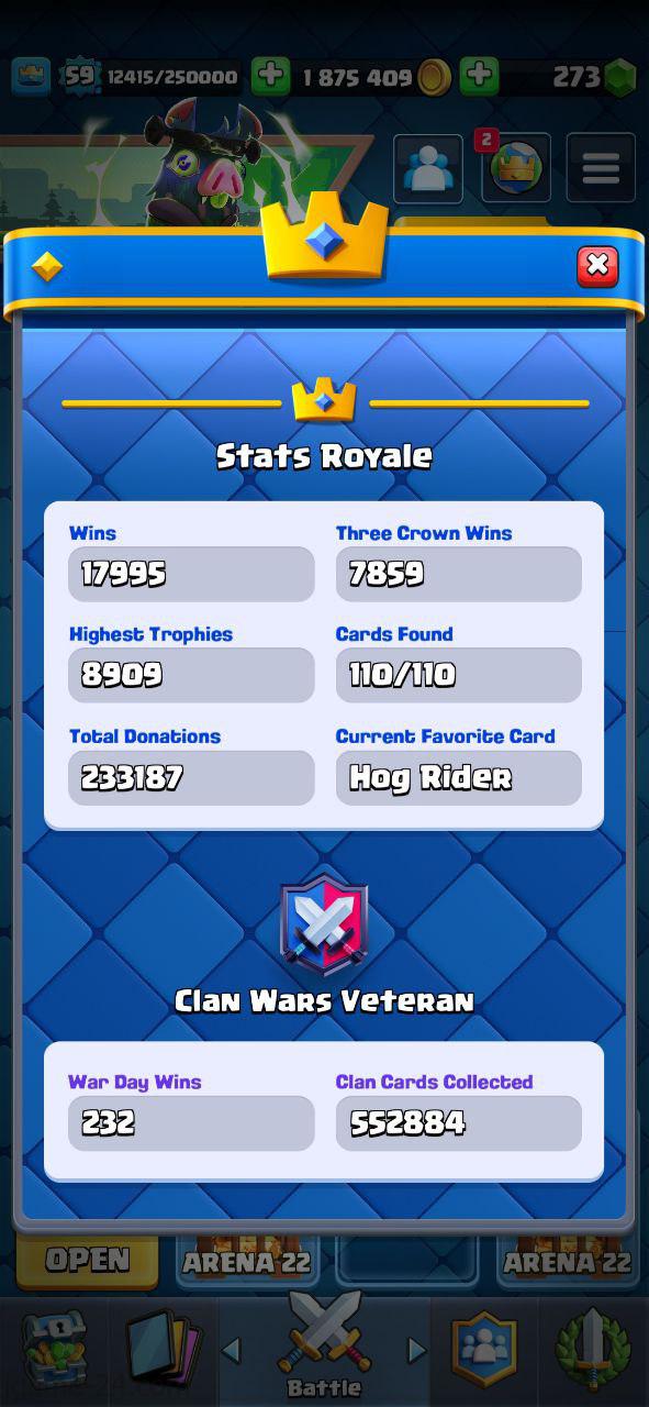 ROYALE LEVEL59 WITH 108MAXED CARD AND 1M GOLD