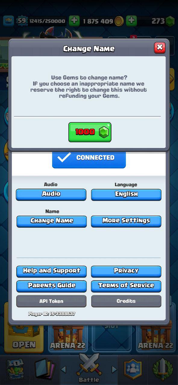 Change name:1000 gems require