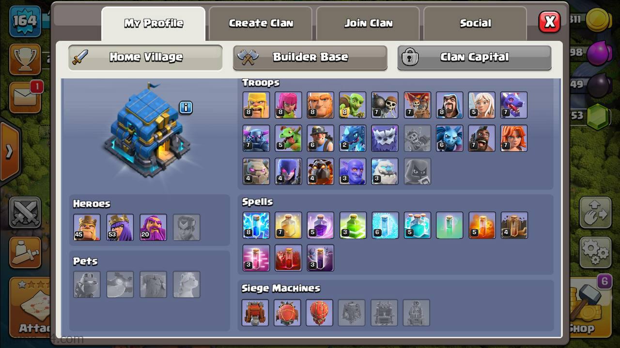 COC TH12 KB45 AQ53 GW20_LVL164