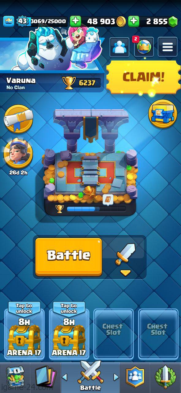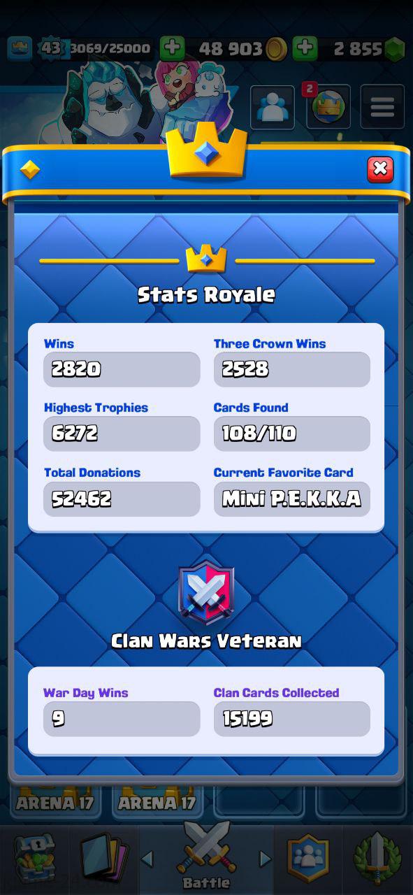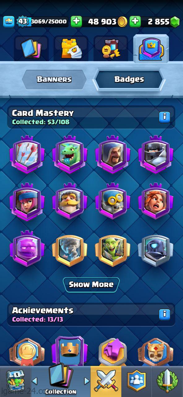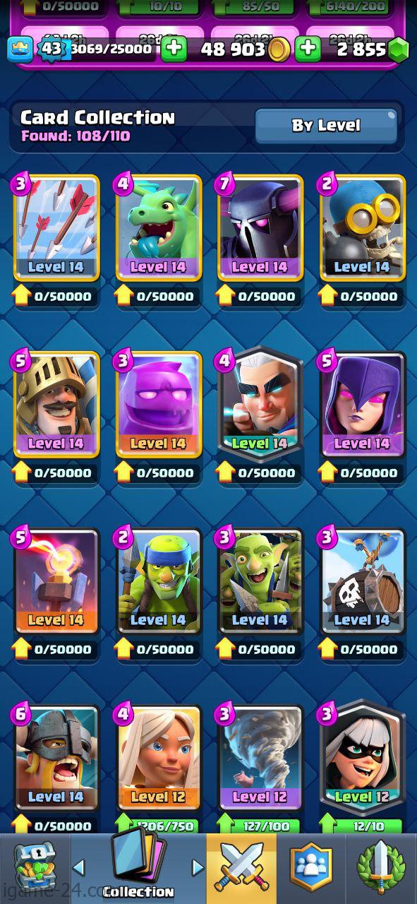 ROYALE LEVEL43 WITH 22MAXED CARD AND 3K GEMS
