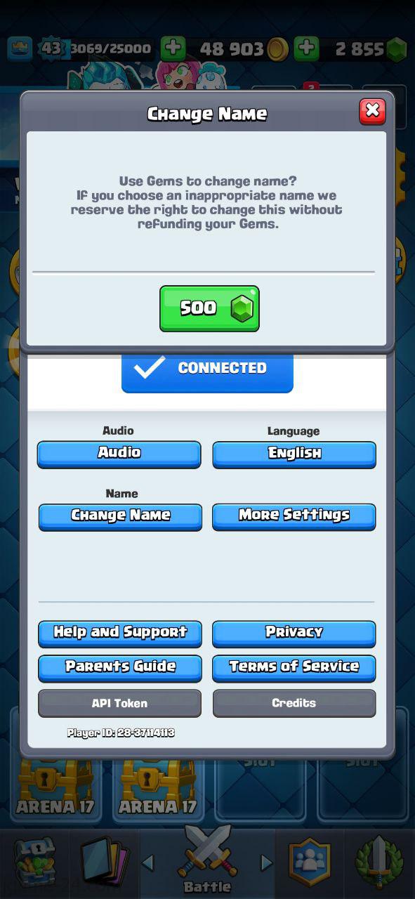 Change name:500 gems require